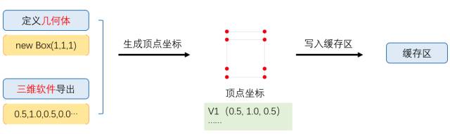 由于顶点数据往往成千上万,在获取到顶点坐标后,我们通常会将它存储在显存,即缓存区内,方便GPU更快读取。
